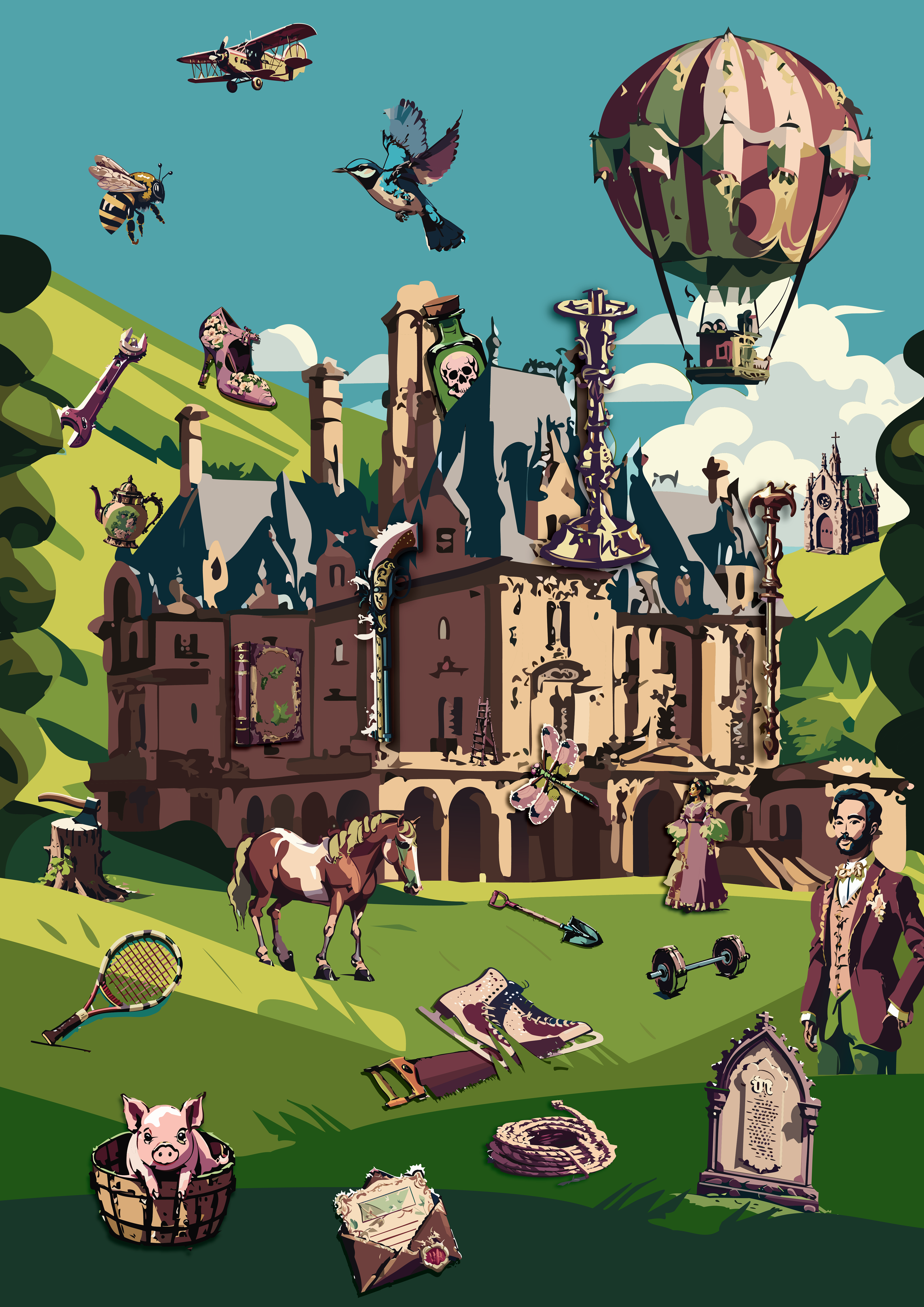 Answers: Church, Saw&Skates, Bees, Dumbell, Pistol, Headstone(natural causes), Axe, Poison.