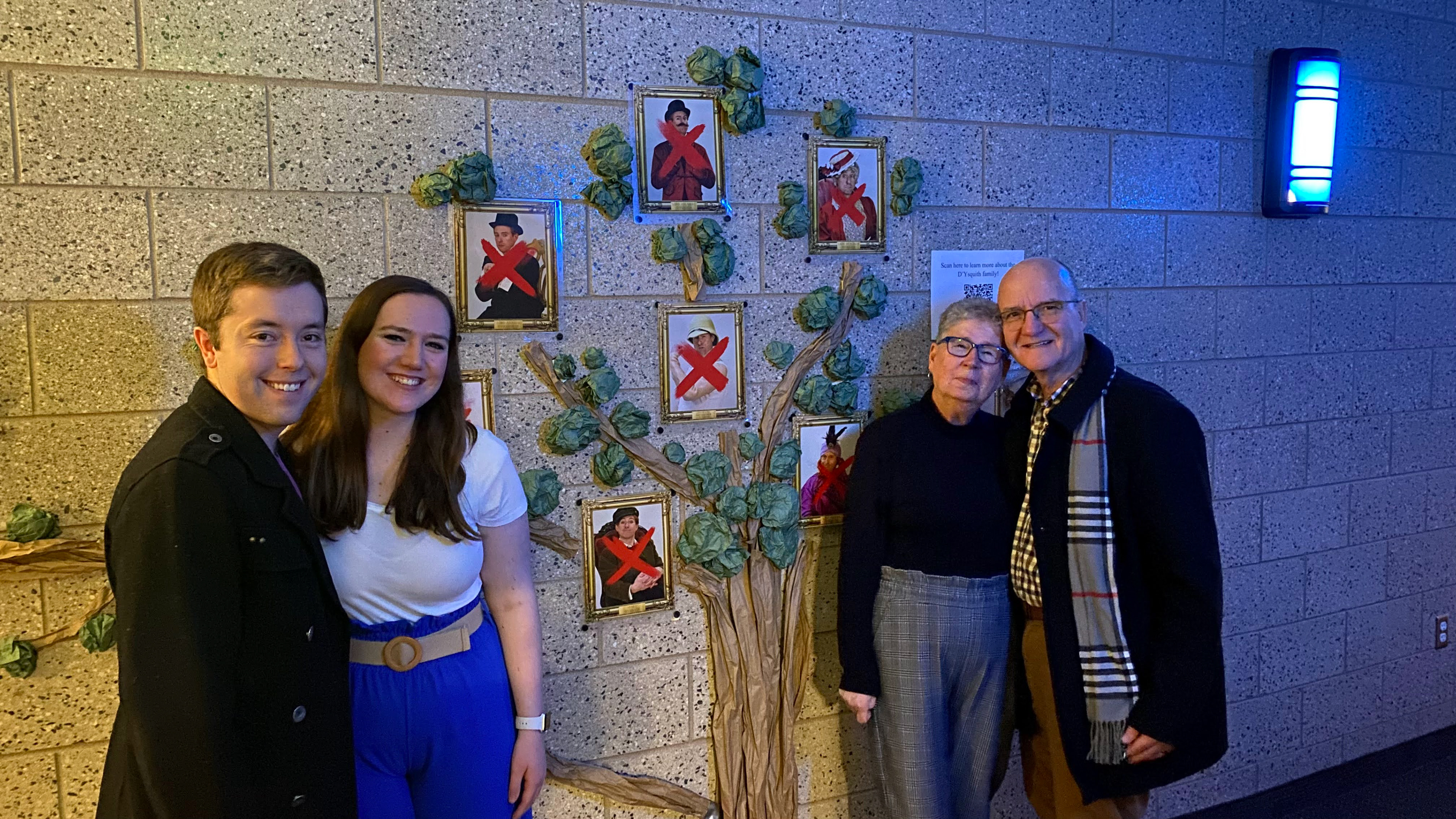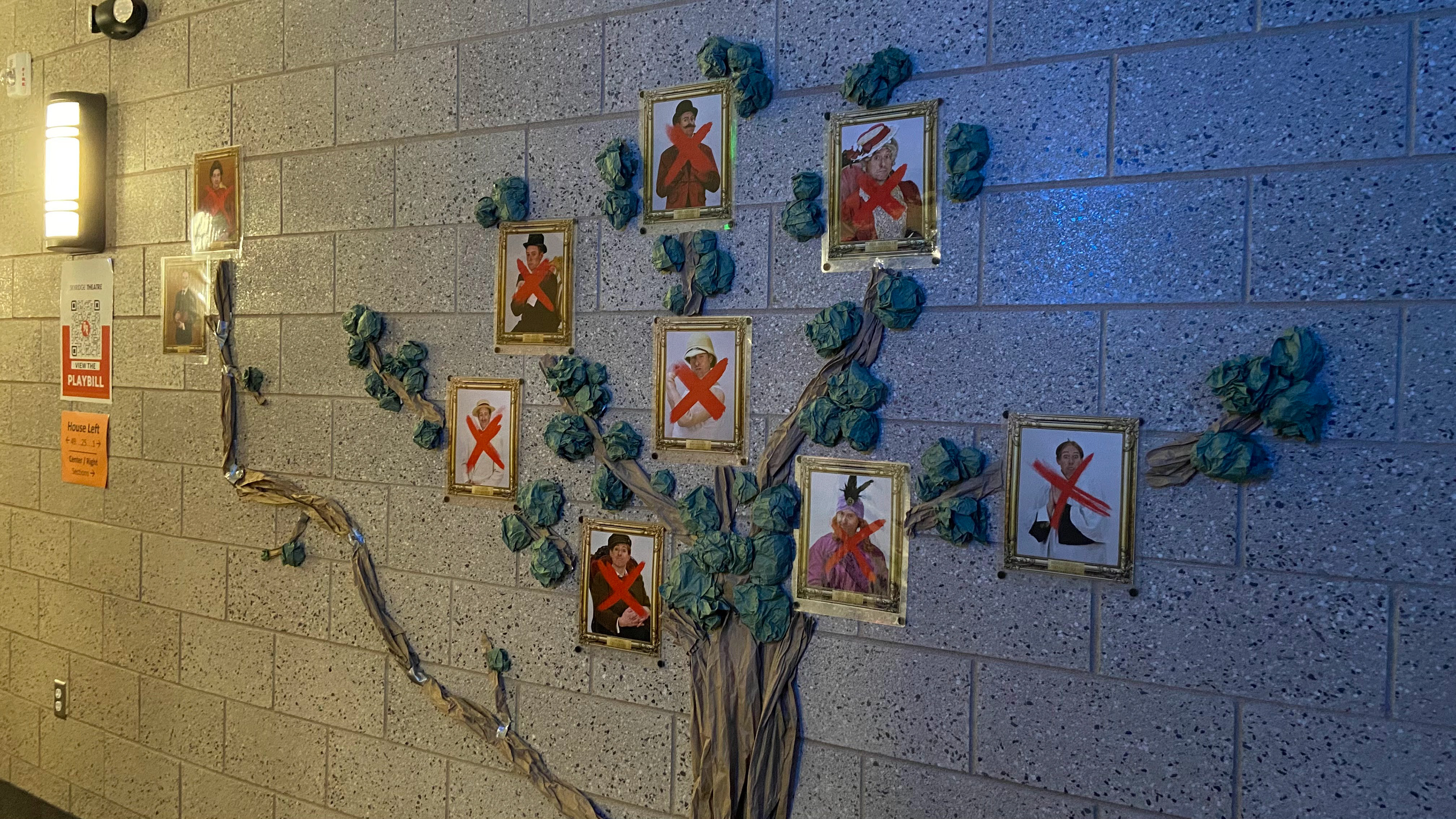 As the audience members entered the theatre they were greeted with a D'Ysquith family tree. There was a branch extending that appeared to be less full and attached with duct tape, the branch being Monty and his mother. The rest were the more public members of the D'Ysquith family
